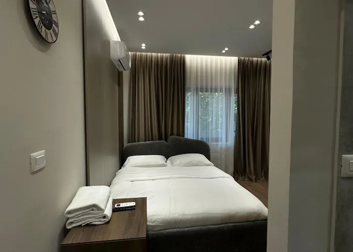 Daire, Tiran şehir merkezine 1 km uzaklıkta ve Blloku'a uzak değildir. Daire, İskender Bey Meydanı'a 13 dakikalık yürüme mesafesinde bulunmaktadır. Misafirler, yürüyerek 5 dakikada şarap barı Mayfair'ı bulabilirler. Edhem Bey Camii de kısa bir sürüş mesafesindedir.